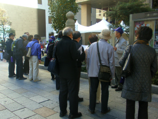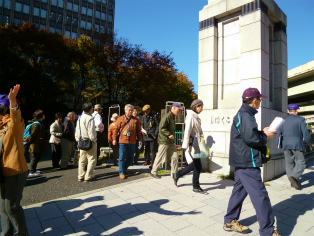 晴天に恵まれ、晩秋の穏やかな一日、江戸下町の中心だった日本橋から日比谷までを歩きました。今回のコースは終始ビル街であり、江戸時代の面影を残しているものがほとんどありません。特に銀座周辺の堀や川はすべて埋め立てられ、橋とは名ばかりになっています。