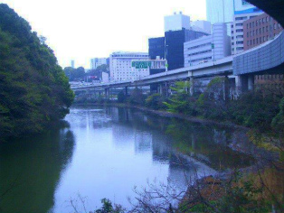| 弁慶橋のぎぼしと桜と | 赤坂の溜池跡(細長いひょうたん形の溜池跡) |