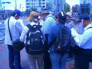 五月晴れとなった5月12日(日)、日光御成道を南下する形で駒込駅前から班毎に出発しました。二代秀忠から始まった日光社参の行列は最多で15万人にも及んだとか。どんなに壮観であったことでしょう。さて、富士山の世界文化遺産登録には富士講も一役買っているかと思いますが、今回は奇しくも江戸三大富士講の駒込「富士神社」、「白山神社」の二つを訪ねました(他に「護国寺」)。また江戸五色不動の一つ「目赤不動」も巡り、残りのお不動様も行ってみたいとあれこれ興味も湧いてくる見学会となりました。