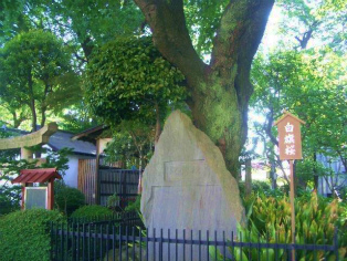 | 白山神社境内の旗桜(写真選択→拡大) | 白山神社本殿 |