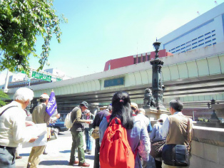 | 江戸橋 | 江戸橋を渡ると今はオフィス街、日本橋のたもと野村証券本社前で解散しました。 |