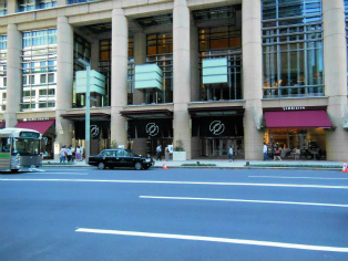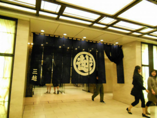 | 今の三越と三井本館の間から見えるのは・・・ | 日本橋三井タワーののれん |