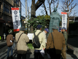 かつて江戸四宿の一つだった品川宿を歩く見学会が、12月7日(日)に行われました。冬晴れの空の下、「大森海岸」駅を出発し、鈴ヶ森刑場跡から旧東海道に沿って北へ向かい、南品川宿とその周辺を巡りました。途中には多くの寺社や旧跡が点在し、見所が満載です。残念ながら品川宿の痕跡をとどめるものはほとんど残っていませんが、東海道の宿場であった土地から寄贈された「東海道の松」があちこちに植えられており、街道の雰囲気を醸し出しています。最後は北品川宿と南品川宿の境であった目黒川に架かる品川橋を渡り、「新馬場」駅で解散となりました。