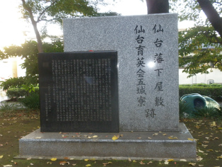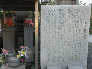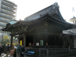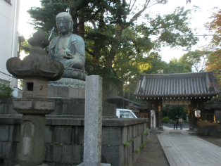 | 仙台藩下屋敷跡の石碑 | 海雲寺の「千躰荒神堂」 |