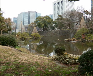 | 日比谷公園内にある御門石垣を残し堀を池とした心字池 | 日比谷見附跡 |