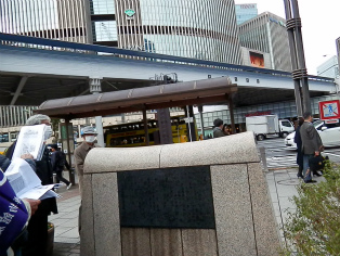 | 東京駅八重洲北口、奉行所の位置案内 | JR東京駅八重洲北口にある北町奉行所跡 |