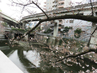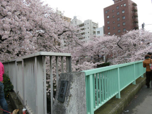 開花宣言が出たものの花冷えの日曜日、有楽町線江戸川橋駅から神田川(神田上水)沿いの『名所江戸百景』の絵の場所の今と説明を楽しみながら歩きました。