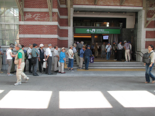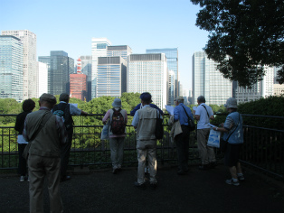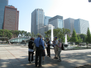 | 東京駅丸の内北口 出発を待つ参加者の皆さん | 江戸の面影はない大手町ビル街 |