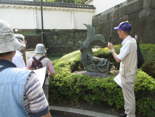 秋の長雨が一息ついて好天に恵まれた日曜日、東京駅丸の内北口で集合した参加者も心なしか晴れ晴れとしていました。江戸城跡は都心のオアシスとなっている皇居東御苑にあります。園内の金木犀が芳香を放って季節の移り変わりを告げるようでした。今までに何度か訪れたことがありますが、改めて江戸城跡として散策すると新たな発見がいくつもありました。大手門前は下馬所でしたが、ここで庶民が大名を評したことが「下馬評」の語源であるなど、興味深い解説も多数ありました。