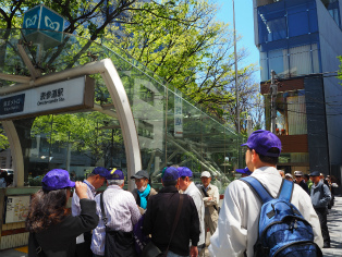 4月23日。表参道駅を出発点とし、青山善光寺→渋谷長谷寺→渋谷氷川神社→金王八幡宮の順番で、5枚の挿絵を参考に現在と過去を見比べながら盛り沢山のスポットを巡りました!初めて見学会のカメラマンとして参加したのですが、快晴で絶好の散策日和となり、楽しく巡ることができました。表参道付近はとてもおしゃれな都会のイメージがあったのですが、この見学会に参加して数多くの昔の史跡や名所があることを知り、イメージががらりと変わりました。とても奥が深いっ!!それにしても、参加者の皆さまが健脚で素晴らしすぎです!!私、実は最後の方は足が棒のようになっており、ヘロヘロでありました…。次回の参加のときまでにはもう少し足腰鍛えておきたいと思います(笑)。写真撮影にご協力してくださった参加者の皆々さま、本当にありがとうございました!