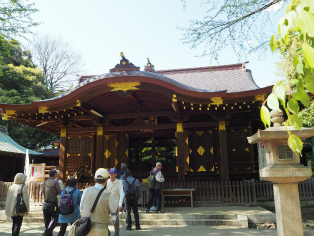 | 温故学会(塙保己一資料館)前にて。 | 渋谷氷川神社の裏の鳥居から入る。 |