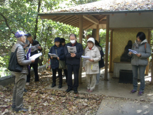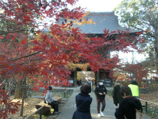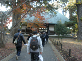 今回の見学会は、武蔵野台地南側の国分寺崖線と呼ばれる崖(ハケ)に沿って、世田谷区の野毛から奥沢まで歩きます。コースの中でも九品仏(くほんぶつ)浄真寺と等々力(とどろき)渓谷はよく知られています。開催日の12月10日は幸い好天に恵まれ、紅葉の名残も楽しむことができました。(所要 約3.5時間)