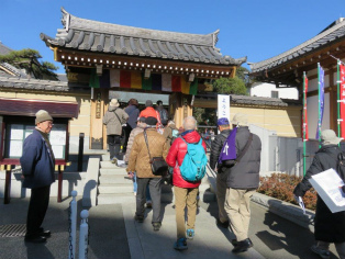 風が強くすっきりと晴れ渡った晴天に恵まれ、JR田端駅前からの七福神巡りです。