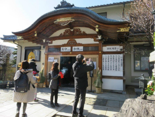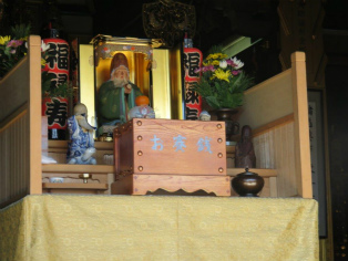 | 東覚寺の朱印受付所 ここで台紙を買いご朱印を押してもらいます | 東覚寺福禄寿 |