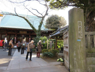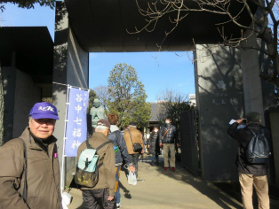 7日は日曜日の晴天、お参りの人出も多く、長蛇の列でなかなか本堂に入れないお寺が続出、御朱印の列も長く、残念ながら見学会なのでゆっくり列に並べません。案内の方の詳しい説明に耳を傾けて、ゆっくりのお参りはまた今度ということで、人でいっぱいの不忍池辯天堂で解散しました