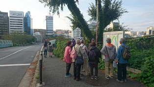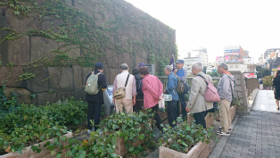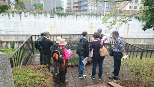 散策には絶好の季節になり、当日も薄曇り時々晴れ、気温21度の好コンデションとなりました。今回のコースはお茶の水から市ヶ谷とかなりの長丁場です。 仙台堀とも呼ばれるお茶の水渓谷、神楽坂の牛込台地、外濠公園からの眺望など東京の「坂道」を感じさせる変化に富んだコースでした。小石川後楽園、亀岡八幡などは時間の関係で入り口までの見学だったのが残念です。亀岡八幡ではお元気な年配のご夫婦の方が、ぜひ参拝したいと一行とはここでお別れし、男坂と呼ばれる急階段を登って行かれました。夕闇迫る16時30分頃市ヶ谷見附跡にて解散となりました。本日の歩行数は1万9千歩を記録しましたが、変化に富んでいるのであまり長さを感じませんでした。筋肉痛になった方も多いのではないでしょうか。