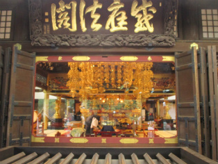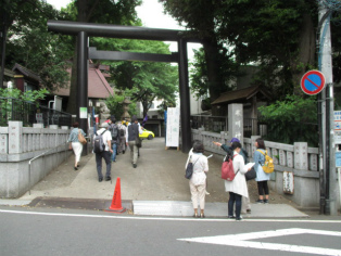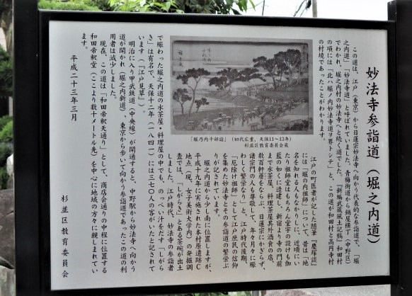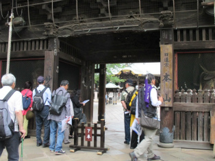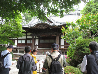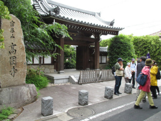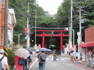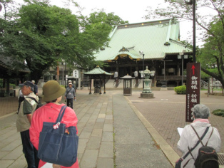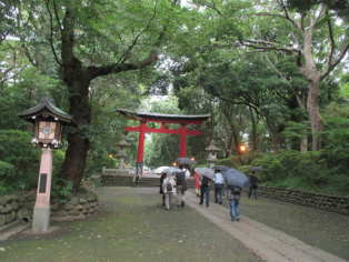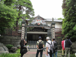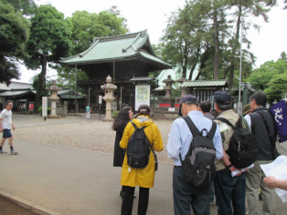 地名の由来となっている高円寺には、将軍・家光が取り寄せたという逸話と共にお茶の木が残っています。堀の内妙法寺には、歴代将軍が野遊びの折に利用した御成りの間があり、狩野探幽筆の画があるといいます。この地域は徳川将軍家に縁が深いと同時に、参拝の庶民でも大いににぎわったようです。最後に訪れた大宮八幡ではとうとう本降りになってしまいましたが、しっとりと濡れた古木を見上げつつ長い参道を進みました。拝殿左手には菩提樹の大木があり、芳しい香りを放っていました。ここから方南通りを京王電鉄西永福駅まで歩き、解散になりました。