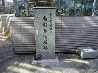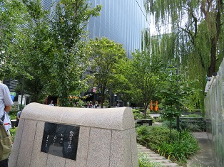 | 有楽町駅前(交通会館側)の南町奉行所跡の碑 | 西銀座通り(外堀通り)の柳並木 |