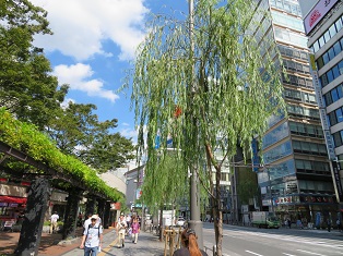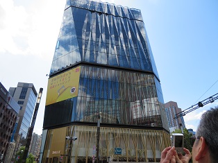 | 江戸切子を模した外観の東急プラザ銀座 | 数寄屋橋跡 後方の数寄屋橋公園には柳の大木も |