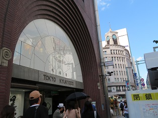 9月25日(水)秋晴れの午後、JR有楽町前の有楽町イトシア地下1階に集合しました。この辺りは南奉行所の跡地で、地下1階にその遺構が展示されていました。緑ゆらめく柳並木の西銀座通りから晴海通りへ出たあと銀座通りまでそぞろ歩きました。途中、人一人やっと通れるほどの昼なお暗いビルの谷間も抜けながら、江戸時代のみならず明治・大正・昭和の面影を残す裏小路や、時代の先端を行くきらびやかな表通りを行きつ戻りつの、不思議な感覚の残る3時間半の見学会でした。