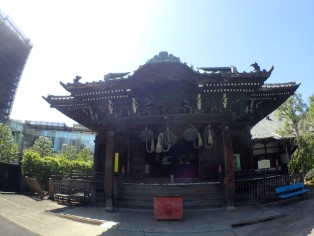| 品川本陣跡の説明板。本陣跡は、その敷地の形のまま聖跡公園となっている。 | 一心寺のご本尊は成田山の分身である不動明王。 |