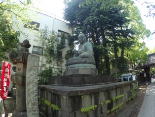 | 品川寺(ほんせんじ)門前に「江戸六地蔵」の第一番とされる銅製の地蔵菩薩坐像が鎮座。 | 品川寺の梵鐘は、徳川家綱が家康、秀忠、家光の供養のために寄進したもの。パリ万博に出品したため「洋行帰りの鐘」といわれている。 |