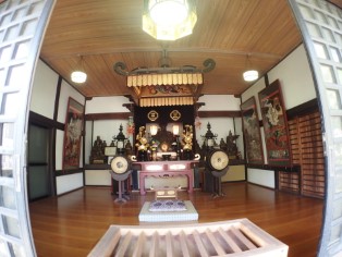 | 海雲寺、本堂に本尊の十一面観音が安置されている。 | 海雲寺の荒神堂内部に信徒が奉納した27面の扁額がある。扁額には、板ガラスに絵が描かれた「ガラス絵」もあり、これは区内唯一の貴重なものである。 |