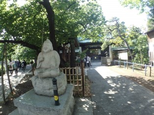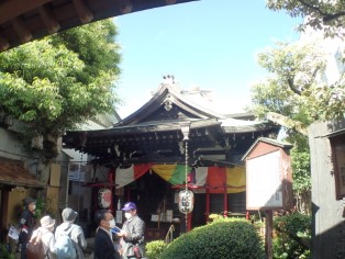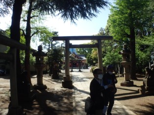 | 急な石段の品川神社。帰りは女坂を下った。 | 品川神社境内には、宝物殿、神楽殿、板垣退助の墓や富士塚、金運のパワースポット阿那稲荷神社があった。 |