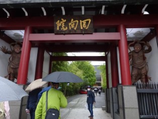 | 回向院山門。出開帳や勧進相撲の興行で賑わい、後に旧両国国技館も建てられた。 | 境内にある鼠小僧次郎吉の墓。 |
