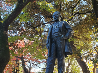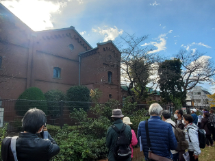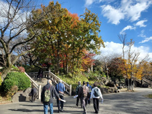 11月27日(土)のお昼過ぎに、JR京浜東北線の王子駅に集合。晴天で見学日和でしたが、風が冷たく、寒さに震える参加者の姿もちらほら。今回は、抄紙会社発祥の地をはじめ、音無親水公園や飛鳥山公園、七社神社など、渋沢栄一ゆかりの地を楽しく巡りました。大河ドラマの影響もあってか、飛鳥山公園は多くの家族連れで大賑わい。旧渋沢庭園では、まだ残る色とりどりの紅葉を楽しみながら晩香蘆や青淵文庫などを見学。見所満載のあっというまの3時間で、最後は公園内の渋沢史料館の前で解散でした。