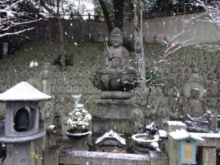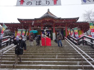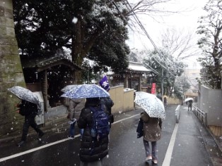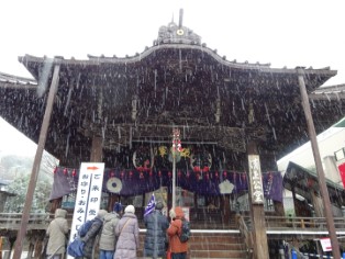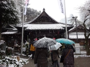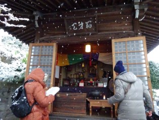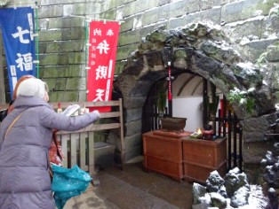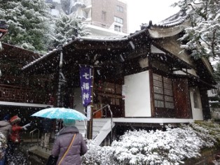 | 妙円寺の妙見堂には寿老人と福禄寿が祀られている。 | 行人坂は転げ落ちそうな急坂。雪の中で歩くのはきつい。 |