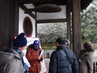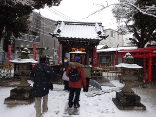 元祖山手七福神は江戸最初の七福神といわれており、目黒不動の参詣道沿いにある6寺に祀られています。見学会のあった1月6日(木)は東京で4年ぶりの大雪となり、どこの寺にも参詣者の姿はありませんでした。正月の賑わいのない七福神巡りとなりましたが、めったに見られない雪景色を楽しむことができました。