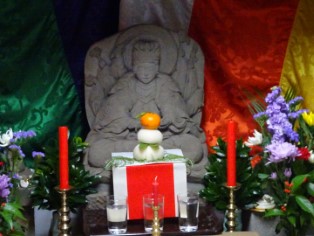 | こちらには木造の弁財天が祀られている。 | 瀧泉寺(目黒不動尊)の本堂前。初詣はいつも大行列だが、参拝者の姿はない。 |