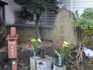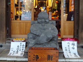 | 境内の外れにある三福堂。恵比寿神・大黒天・弁財天が祀られている。 | 山手七福神の恵比寿神のみお堂の前に置かれている。 |