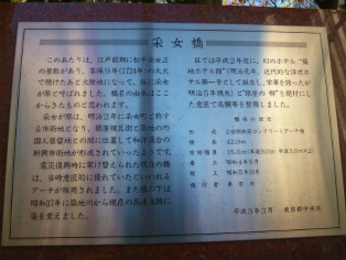 | 所要時間:(見学時間を除く)およそ1時間*築地本願寺は境内から内陣までじっくり見学すると30−40分はかかります。 西本願寺(築地本願寺)―10分―采女が原(万年橋)―7分―采女橋公園・采女橋―10分―歌舞伎芝居(銀座6丁目辺り)―7分―織田有楽齋弟宅地(有楽町マリオン辺り)―16分―新橋―2分―芝口御門跡・三十間堀跡 |