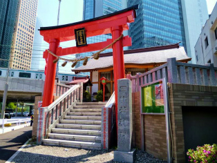| 芝大神宮。借景は東京タワー。図会では大賑わいの祭りの様子が描かれているが、今もかわらずにぎわっているのだろうか。 | 東新橋2丁目1の日比谷神社は、元は芝口三丁目西の裏通り(日陰町)にあった日比谷稲荷。その場所は今は高架下であとかたもなし。 |