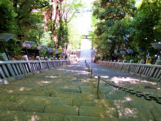 | 帰りは男坂。かなりの急勾配で、ここを馬が駆け上るのは出来たとして、下りはさぞや怖かったろうね。 |