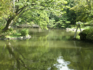 | 墓地にあった仏像型の墓碑。 享保6年(1721)と刻まれている。 | 有栖川宮(ありすがわのみや)記念公園。丘陵や渓谷もあって散歩には最高。 |