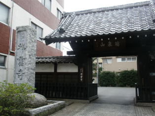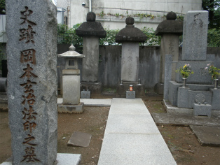 | 「広尾散歩通り」の突き当たりにある祥雲寺の山門。 | 広大な墓地には大名や文化人の墓がたくさんある。黒田長政の墓は実に立派。 |