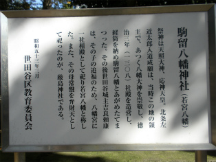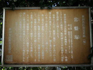 | 所要時間: 歩く時間と見学時間を入れて全行程3時間ほど。 井の頭線・小田急線下北沢駅-10分-森厳寺・淡島堂(北沢淡島明神社)-1分-北沢八幡神社-3分-北沢川緑道-13分-円泉寺・太子堂-4分-烏山川緑道-8分-教学院(心見観音)-5分-大山道道標-7分-蛇崩川緑道-10分-駒留八幡神社(若宮八幡宮)-4分-常盤塚-14分-宗円寺(八幡山宗円禅寺)-4分-田園都市線駒沢大学駅 (括弧内は江戸名所図会の項目名) |