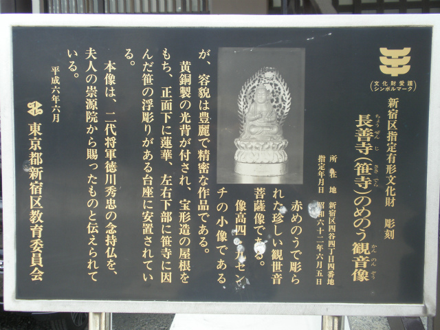 | 所要時間: 歩く時間と見学時間を入れて全行程2時間ほど。 JR中央線四ツ谷駅-1分-四谷御門跡(四谷)-12分-金鶏山真成院(潮干観世音菩薩)-3分-妙典山戒行寺-3分-須賀神社(牛頭天王社)-5分-高見山日宗寺(鬼子母神)-3分-女夫坂(忍原)-12分-笹寺(篠寺)-5分-四谷大木戸跡碑(四谷大木戸)-5分-東京メトロ丸ノ内線新宿御苑前駅 (括弧内は江戸名所図会の項目名) |