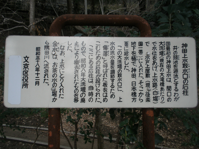 今回は文京区の神田上水跡に沿って歩きます。途中には神田上水に関する史跡や遺構が残されています。歩いたのは梅の花香る3月初めでした。 【取材】歩いた人(文・写真):広報部会・菊池真一 |
