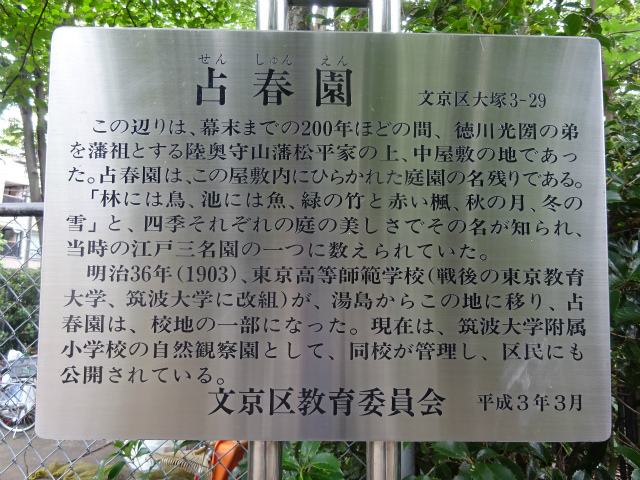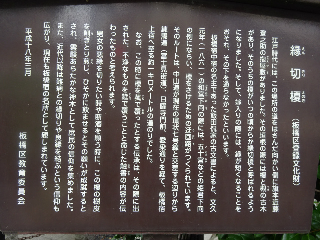 | 所要時間: 歩く時間と見学時間を入れて全行程3時間30分ほど。 丸ノ内線茗荷谷駅-3分-筑波大学東京キャンパス(旧東京高等師範学校)-4分-占春園-6分-簸川神社(旧氷川明神社)-8分-猫又坂(猫又橋跡)-15分-東福寺(十羅刹女堂)-15分-真性寺(江戸六地蔵)-1分-巣鴨地蔵通り商店街(旧中山道)-13分-猿田彦大神庚申堂(旧巣鴨庚申塚)-10分-都営三田線西巣鴨駅-地下鉄5分-都営三田線板橋区役所前駅-2分-仲宿商店街(旧中山道板橋宿仲宿)-1分-遍照寺-5分-板橋宿本陣跡の碑-5分-板橋-5分-縁切榎-6分-智清寺(木下稲荷祠)-8分-都営三田線板橋本町駅 |