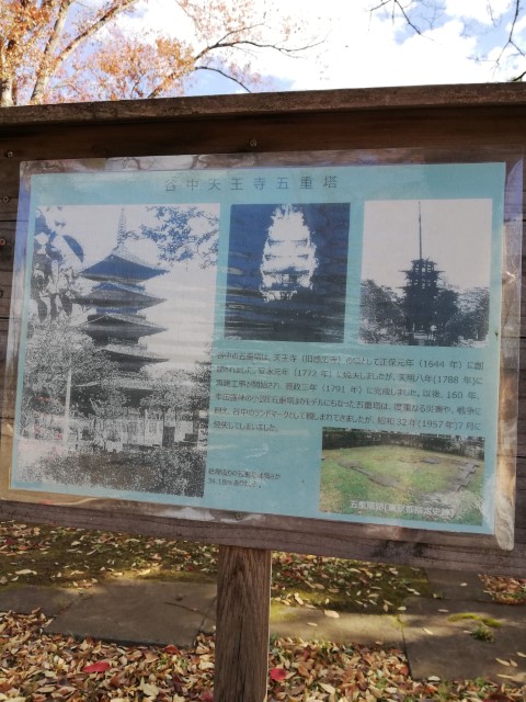 | 七面坂を経由してまた南下、谷中霊園方面へ。天王寺五重塔の在りし日の姿を伝える説明板。(写真選択→拡大) |