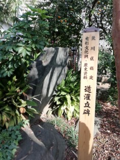 | 山門を入ってすぐに見える道灌丘碑。かろうじて数文字読めるかどうか。 |