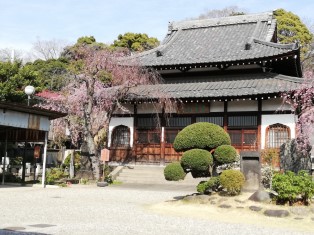 | 花見寺の青雲禅寺。本堂の右前に「船つなぎ松の碑、左側に滝沢馬琴筆塚の碑がある。 |