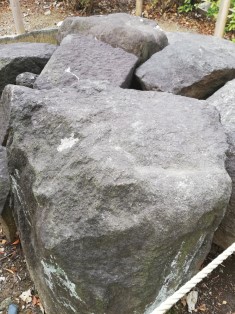 | ただの石にしか見えないので、この説明板を読まないと素通りしそう。(写真選択→拡大) |