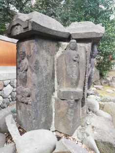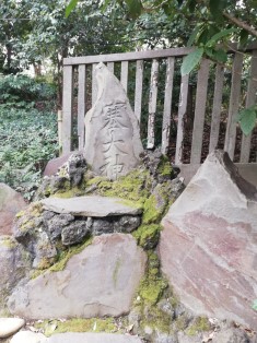 塞大神(さえのおおかみ)。道祖神ということのようだ。元は駒込の追分、現在の東大農学部前にあったという説明板が立っている。 |