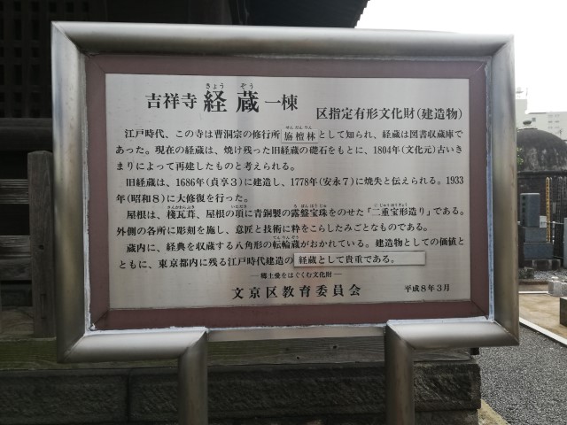 | 山門と同様戦災を免れた経蔵は、花頭窓や凝った彫刻など、美しい建造物。来年はサクラの頃にまたぜひ訪れたい。 |