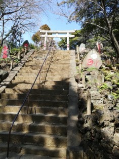 天祖神社から富士神社へ。社殿への階段は24、5段しかないが、かなり急。下りは要注意。 |